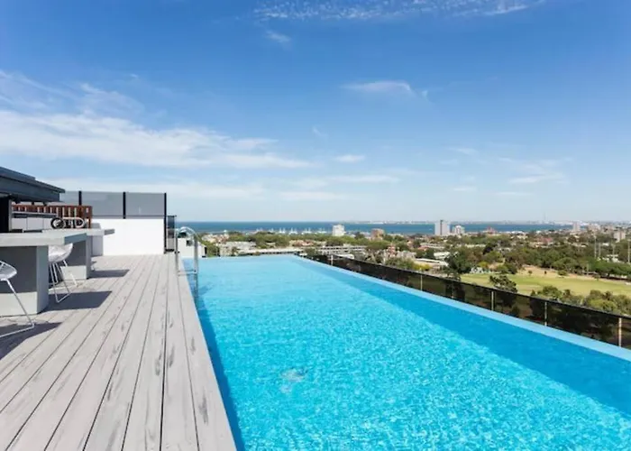 El apartamento St Kilda Pool Luxe By Ready Set Stay Melburne está situado a unos 20 minutos a pie del Teatro Palais, y a 2 km del Estadio Lakeside. Este apartamento dispone de WiFi y se encuentra en una zona residencial de Melburne.